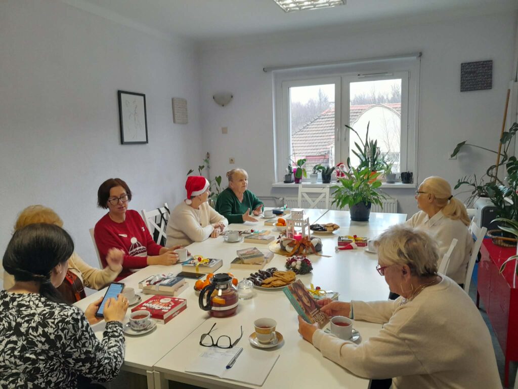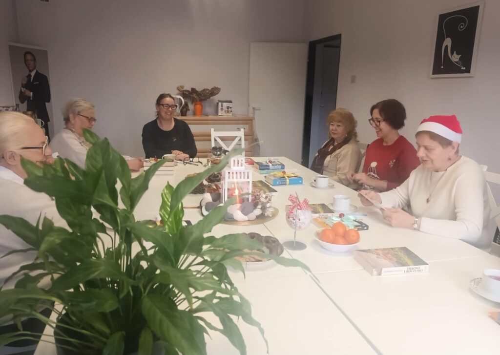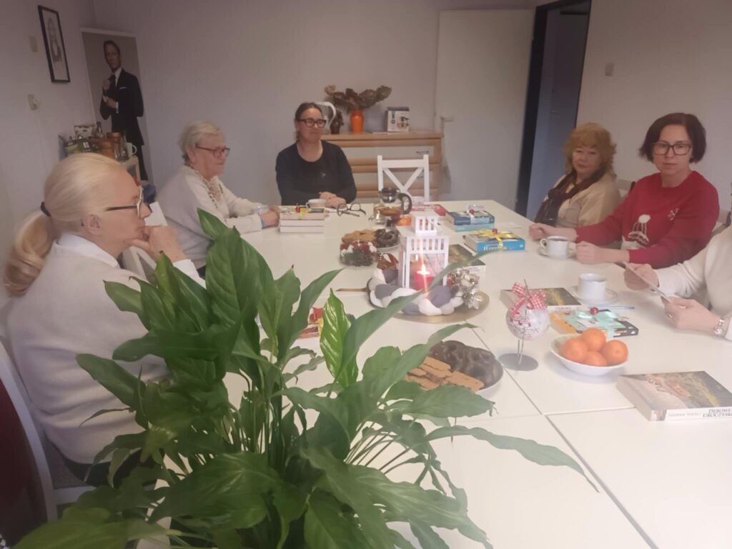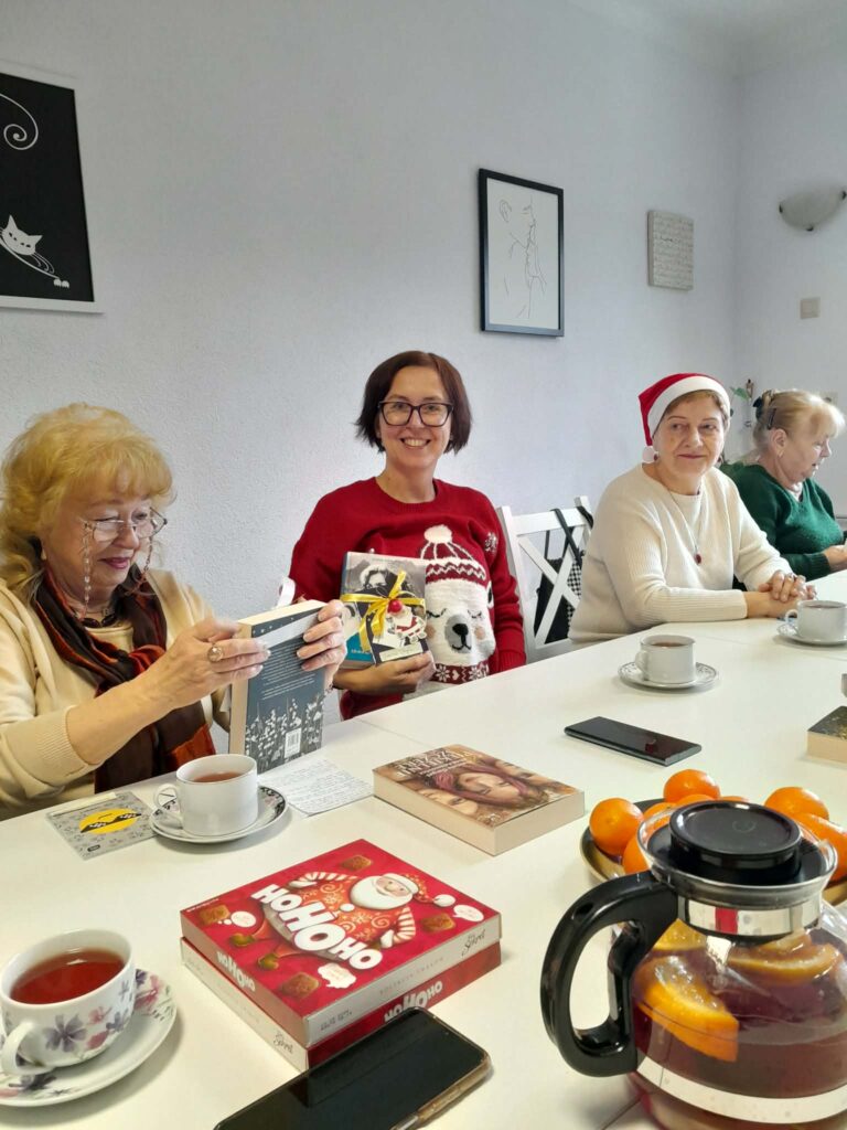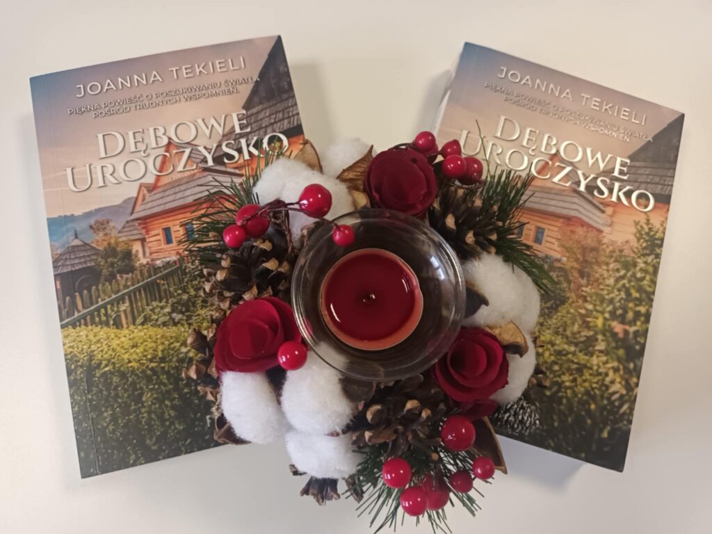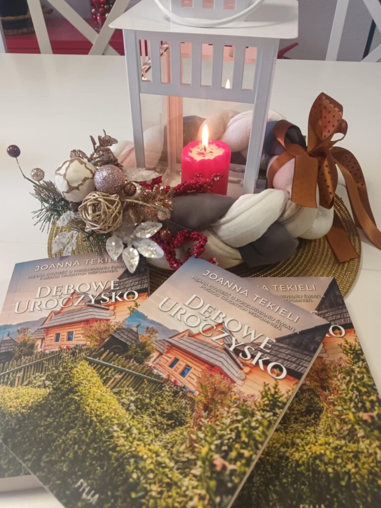 Książka Joanny Tekieli „Dębowe Uroczysko” towarzyszyła nam podczas grudniowego spotkania Dyskusyjnego Klubu Książki. Spotkanie wyjątkowe bo powoli otula nas magia zbliżających się Świąt. Były więc dyskusje literackie i te najzwyklejsze – życiowe. Lektura jest dowodem na to, że tylko wśród przyrody jesteśmy w stanie odnaleźć ukojenie. Wiarygodni bohaterowie przeżywają prawdziwe problemy. Opowiedziana przez autorkę historia daje relaks ale też skłania do przemyśleń. Jest autentyczna i każdy może w niej odnaleźć cząstkę siebie. Nie mogło zabraknąć książkowych upominków. Nic tak nie relaksuje jak wyjątkowa książka. Zostawiłyśmy Panie z dobrym słowem dzięki „Kartom Pozytywnej Inspiracji” Drodzy Czytelnicy! – życzymy Zaczytanych Świąt!
