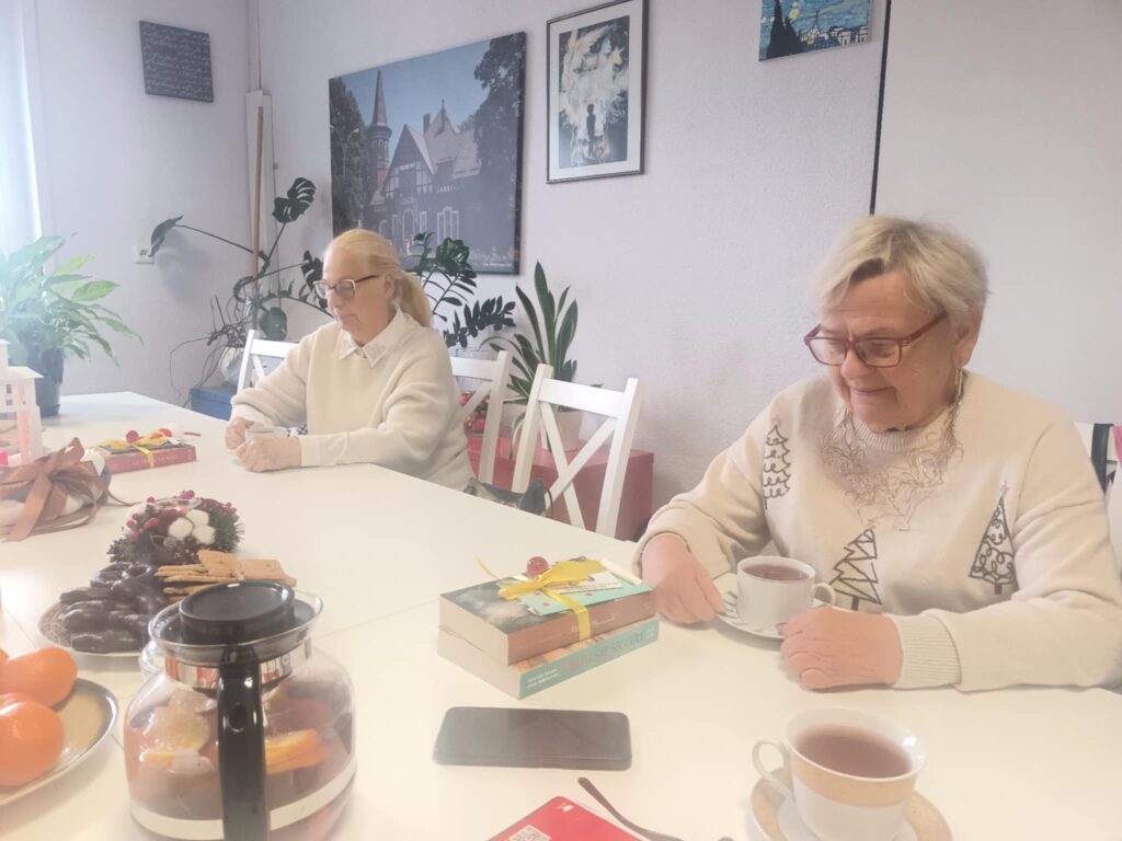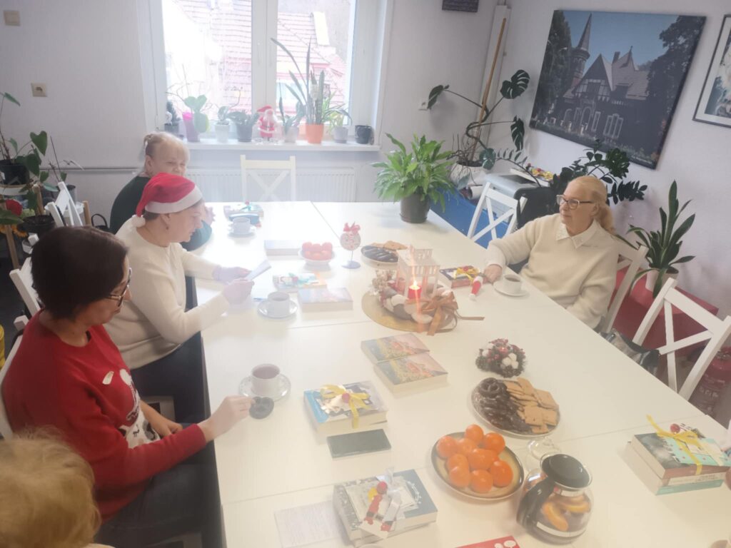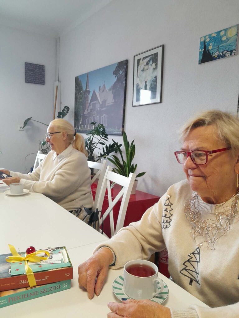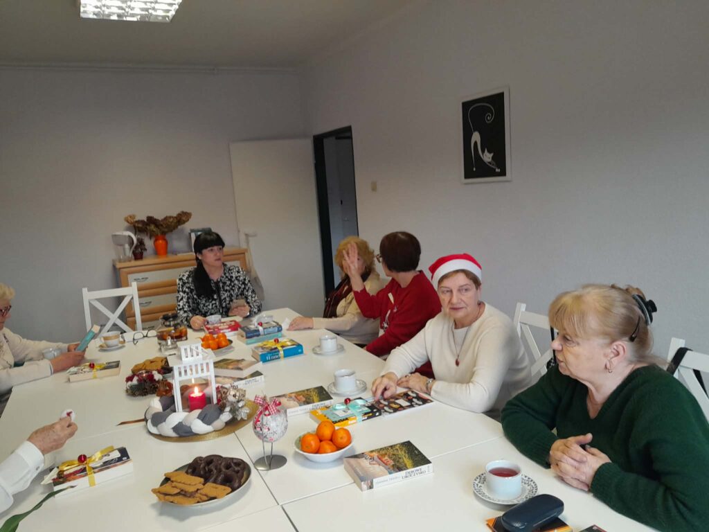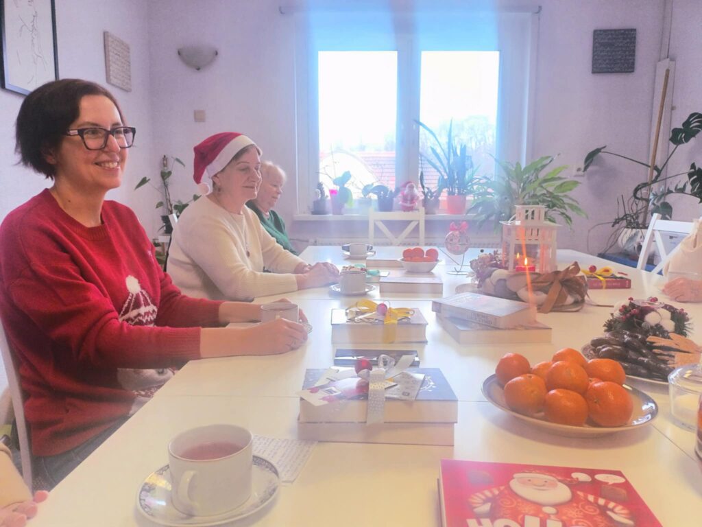 Książka Joanny Tekieli „Dębowe Uroczysko” towarzyszyła nam podczas grudniowego spotkania Dyskusyjnego Klubu Książki. Spotkanie wyjątkowe bo powoli otula nas magia zbliżających się Świąt. Były więc dyskusje literackie i te najzwyklejsze – życiowe. Lektura jest dowodem na to, że tylko wśród przyrody jesteśmy w stanie odnaleźć ukojenie. Wiarygodni bohaterowie przeżywają prawdziwe problemy. Opowiedziana przez autorkę historia daje relaks ale też skłania do przemyśleń. Jest autentyczna i każdy może w niej odnaleźć cząstkę siebie. Nie mogło zabraknąć książkowych upominków. Nic tak nie relaksuje jak wyjątkowa książka. Zostawiłyśmy Panie z dobrym słowem dzięki „Kartom Pozytywnej Inspiracji” Drodzy Czytelnicy! – życzymy Zaczytanych Świąt!