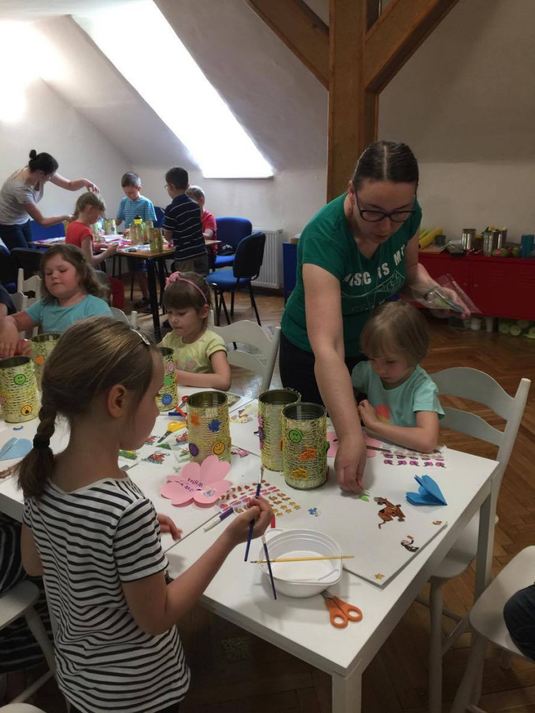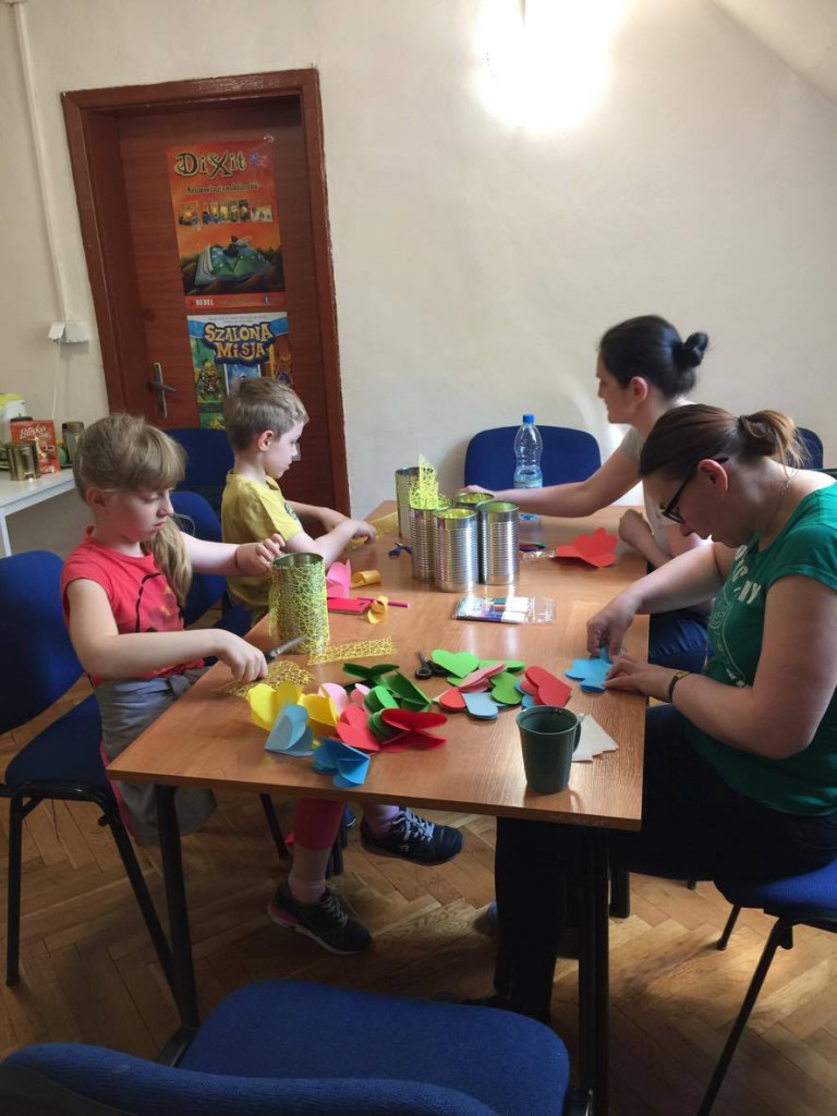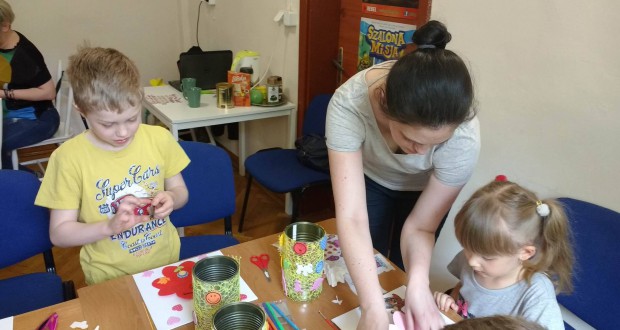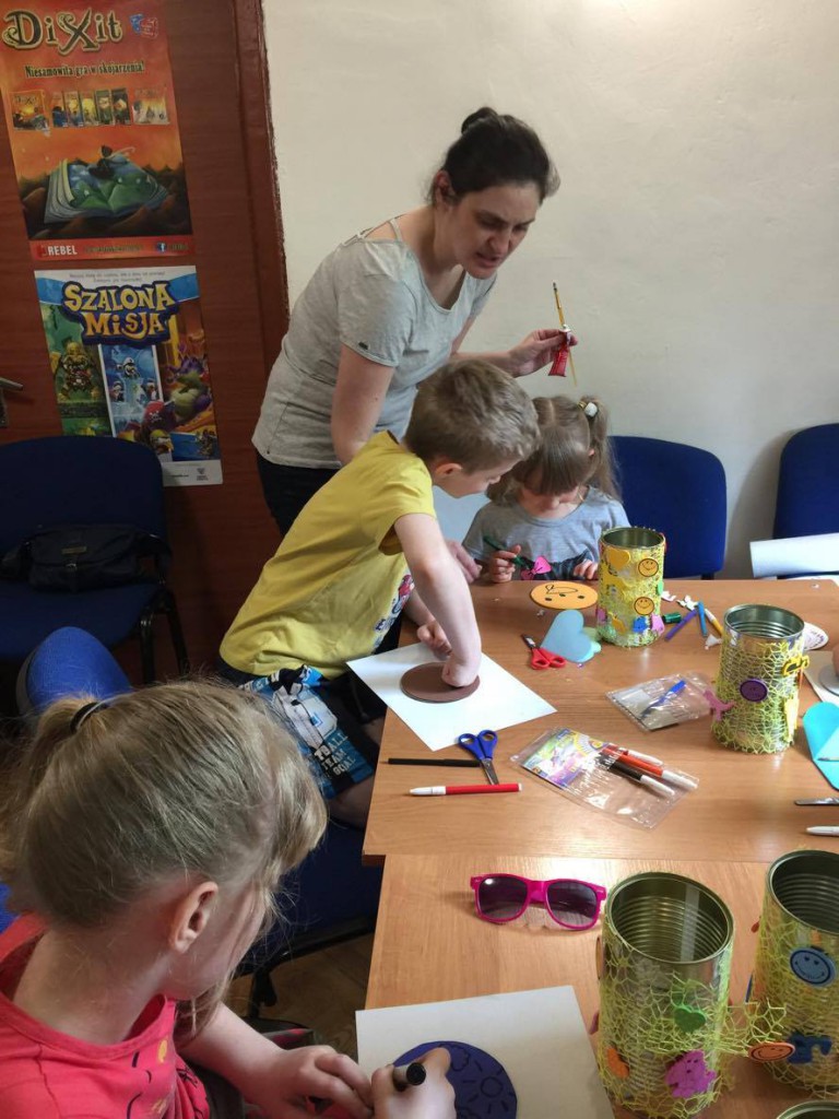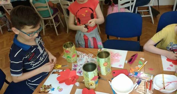 20 maja w Pałacyku Szymańskiego odbyły się podwójne ostatnie zajęcia Kreatywnych Dzieciaków przed wakacjami. Tym razem wspólnie przygotowywaliśmy prezenty dla rodziców na zbliżające się święta na Dzień Mamy i Taty. Powstała kolorowa puszka na narzędzia dla taty, obraz dla mamy i podkładka pod kubeczek z płyty CD. Uczestnicy warsztatów nie zawiedli, wykazali się kreatywnością, wspaniałymi pomysłami, każdy przygotował niepowtarzalne prezenty dla rodziców.