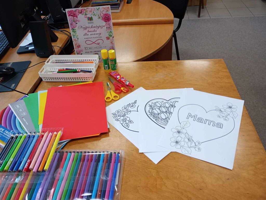 21 maja 2025 w naszej Bibliotece – w Filii nr 6 w Kromołowie – było naprawdę magicznie. Odbyły się wyjątkowe warsztaty plastyczne pt. „Najpiękniejsza laurka dla mamy”. Dzieci z ogromnym zaangażowaniem i miłością stworzyły piękne serca z życzeniami dla swoich ukochanych Mam. Było kolorowo, twórczo i bardzo wzruszająco. DZIĘKUJEMY wszystkim za obecność i wspólnie spędzony czas. Do zobaczenia na kolejnych zajęciach.