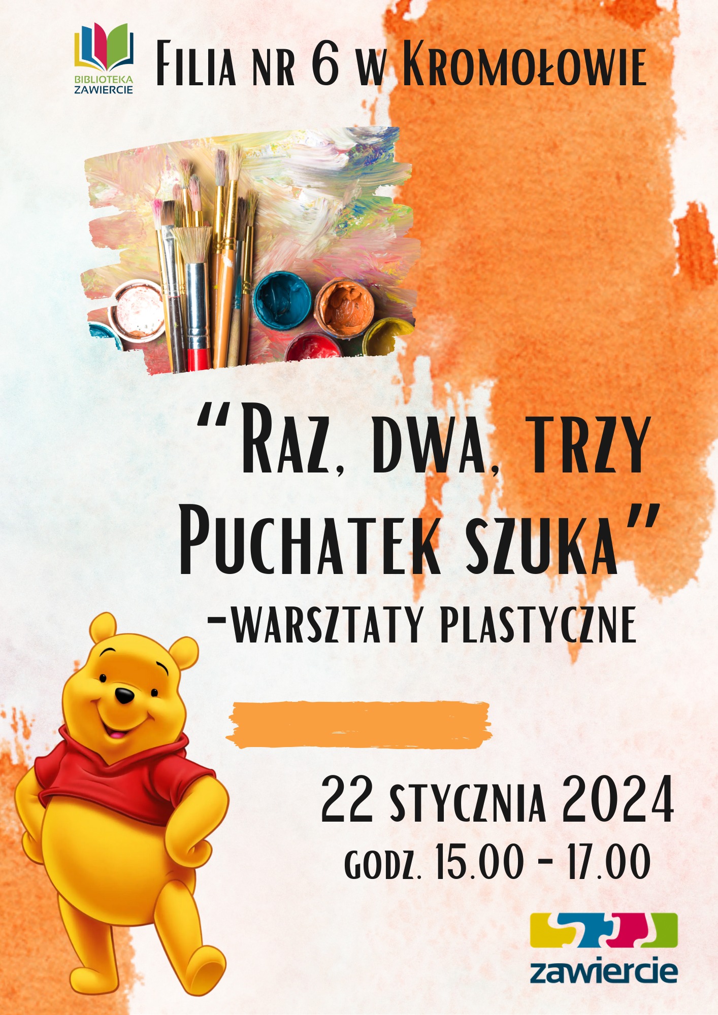 Tego Misia znają wszyscy Czytelnicy naszej biblioteki. Z puchatym bohaterem warsztaty plastyczne w Filii nr 6 w Kromołowie będą prawdziwą przyjemnością. Zapraszamy