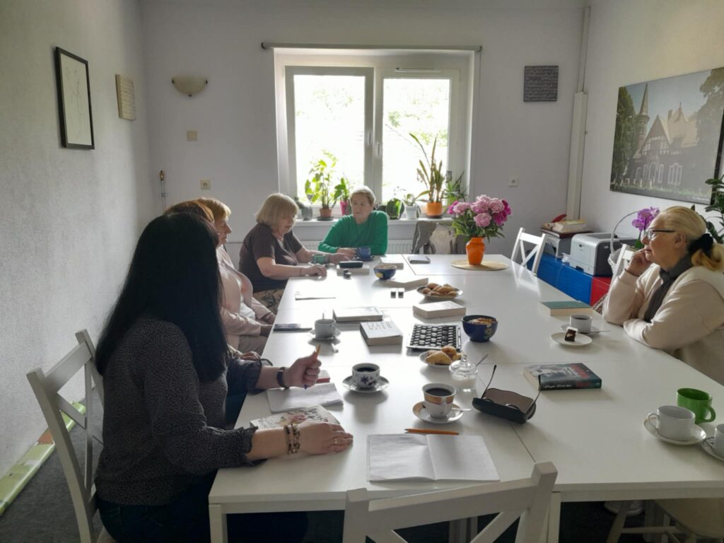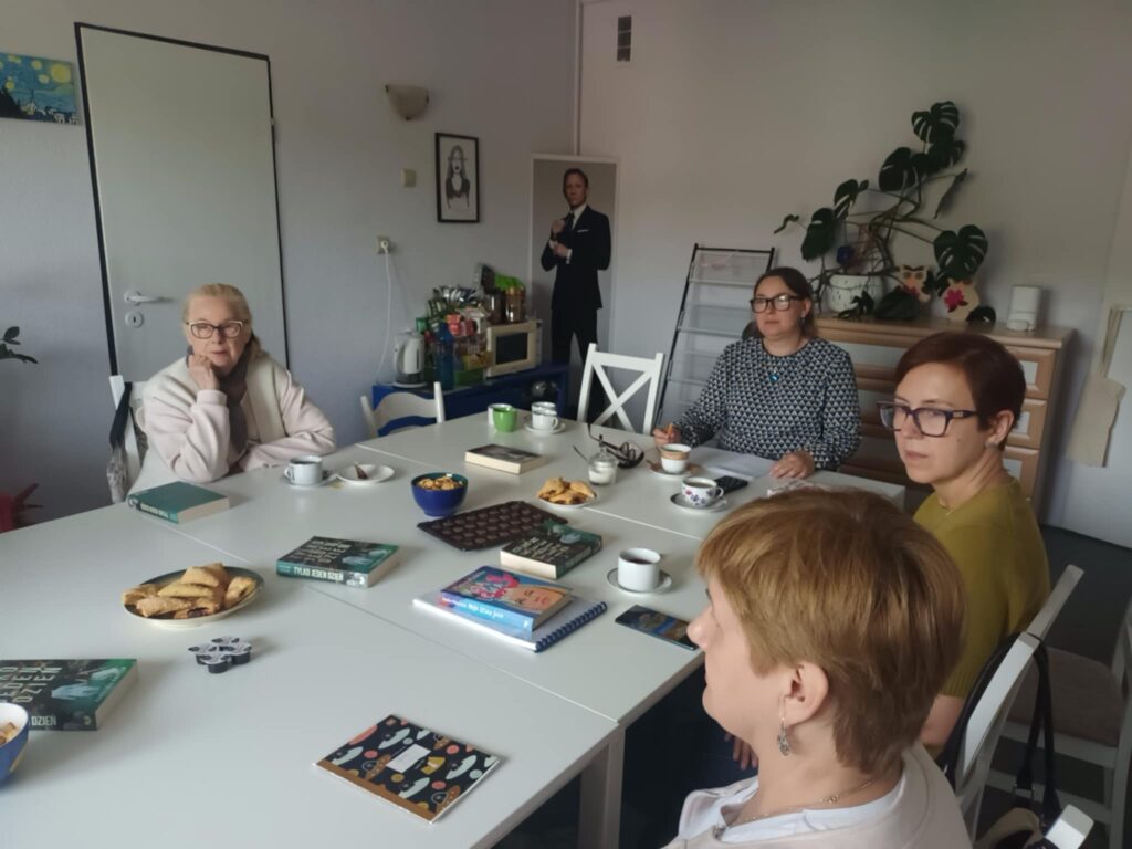 Właściwym celem książki jest zmuszenie nas do samodzielnego myślenia – im więcej z niej wyczytujemy, tym jeszcze więcej chcemy. Kto lubi czytać, ten czerpie niewyobrażalną radość z możliwości podróżowania po literackim świecie przygód. Książki dają nam podpowiedzi, motywują ale też mogą stać się przyczyną istotnych zmian w naszym życiu. Czerwcowe spotkanie Dyskusyjnego Klubu Książki upłynęło nam pod hasłem ulubionej książki. Czytelniczki miały okazję przedstawić książki, które w znaczący sposób wpłynęły na ich postrzeganie świata. Wśród zaproponowanych tytułów znalazły się: „Po tamtej stronie chmur” T. Betcher, „Słowik” K. Hannah, „A las pamięta” M. Wojtkiewicz, „My” E. Zamiatin, „Mimo lęku” S. Jeffers czy „Moja lewa joga” P. Młynarska i „Nie czekaj już dłużej” G. Gargaś i A. Adamowicz. Książki pozwoliły nam wysnuć wniosek, że każdy z nas powinien nabyć umiejętność radzenia sobie w świecie pomimo wszechobecnego lęku. Żyć szczęśliwie i efektywnie, wbrew dręczącym obawom. Lęk nie może nas spowalniać, ani zwalniać z działania. Biblioteka to kopalnia głęboka i odkrywkowa. Dziękujemy za odwiedziny i wartościową dyskusję